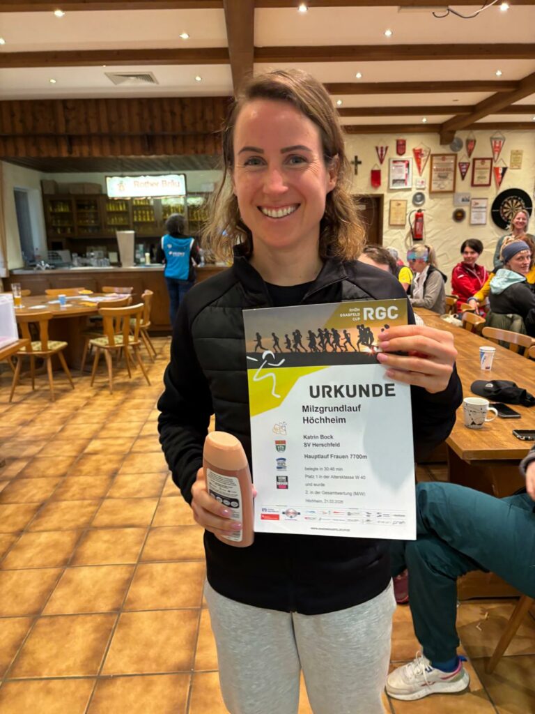 Auch bei den Erwachsenen gab es starke Ergebnisse. Bei den Frauen überzeugte Katrin Bock mit einem hervorragenden Lauf: Sie wurde Gesamtzweite und gewann zugleich ihre Altersklasse W40 über 7.700 Meter.